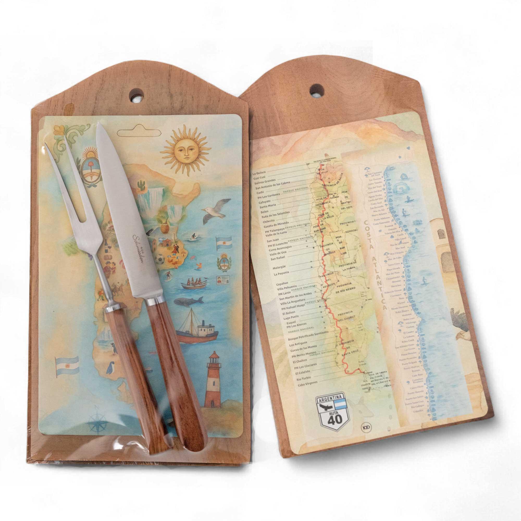 Juego de Tabla Con Cuchillo y Tenedor Cabo Madera Simple